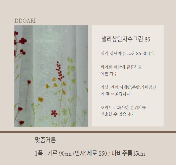 옵션에 있는 사이즈라도 100% 주문제작으로 진행되며 단순변심이나 고객님의 사이즈 실측오류, 설치 불가능한 구조를 이유로 교환, 반품이 불가합니다.